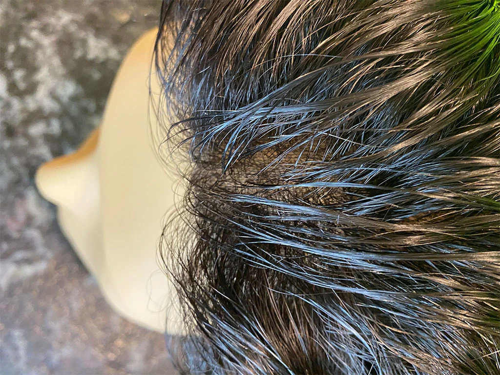 -Material de base: Micropiel siliconada intermedia con transparencia que al contacto con la piel tome el tono del cuero cabelludo.